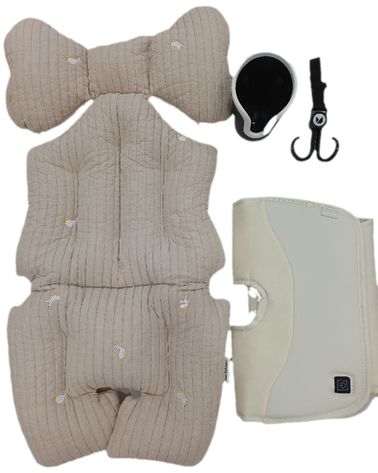 유모차본체(시트), 캐노피,안전바T, 컵홀더1개, 가방걸이1개,신생아 라이너1개, 온열시트1개
