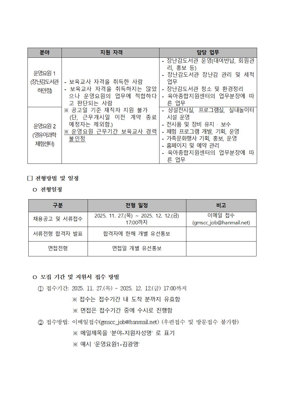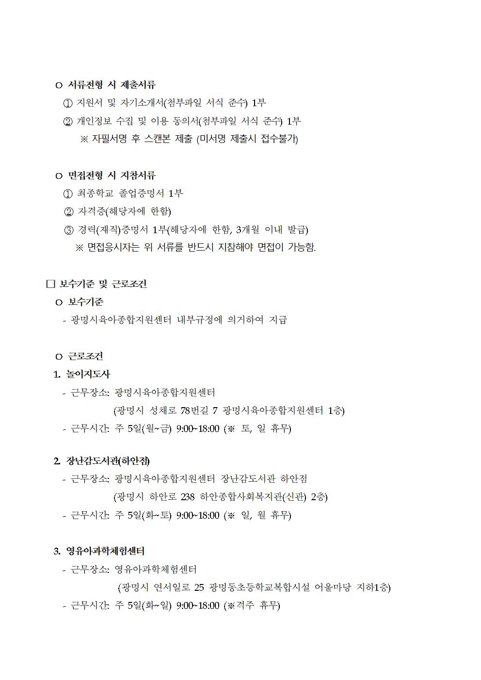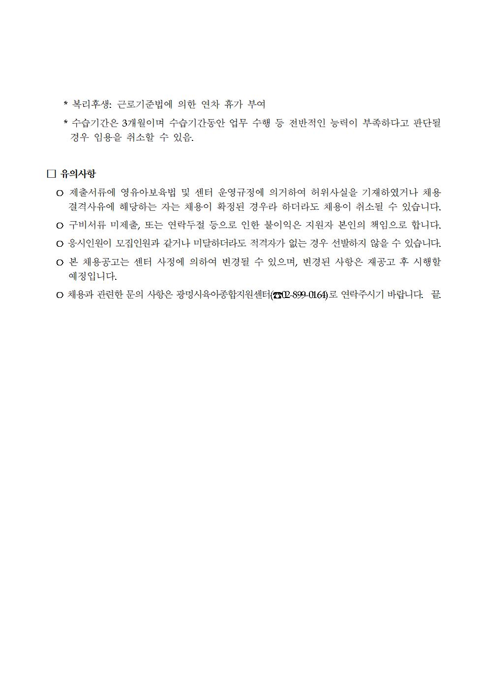 [채용] 광명시육아종합지원센터 직원 채용공고