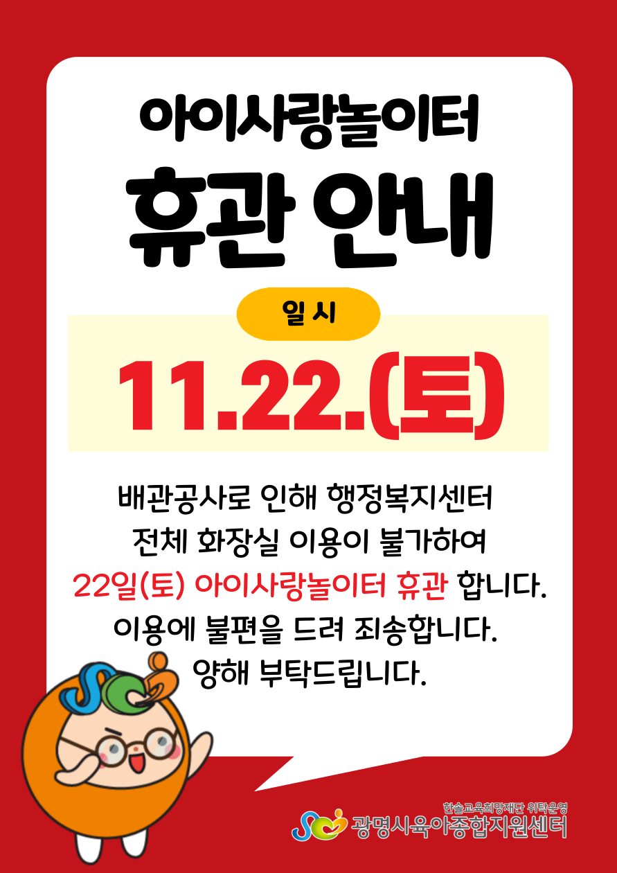 11월22일(토) 아이사랑놀이터 휴관 안내
