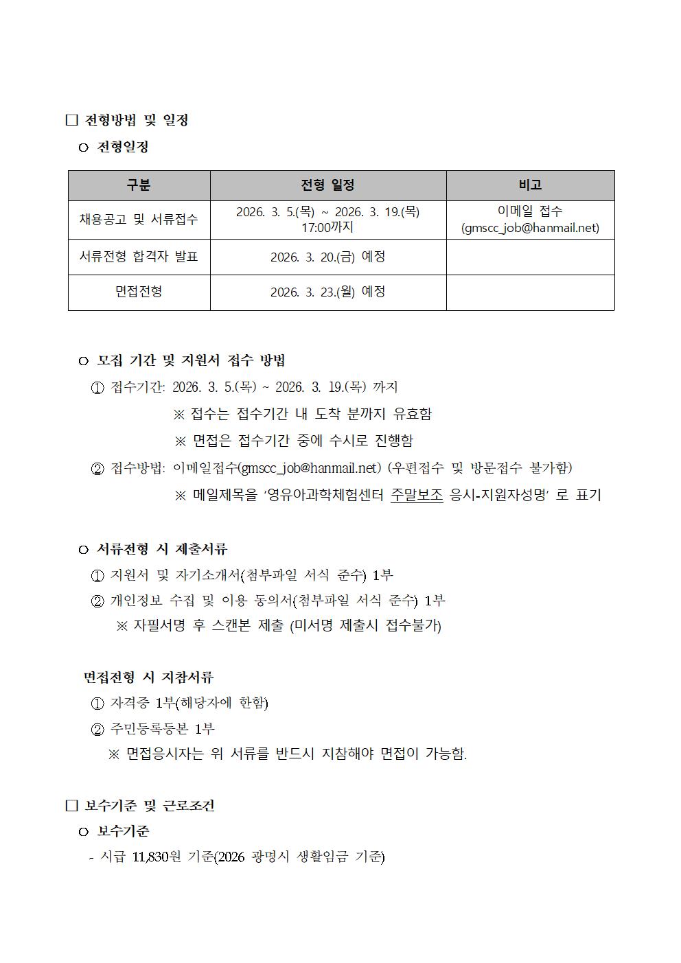 [안내] 광명시육아종합지원센터 주말보조(영유아과학체험센터) 채용공고