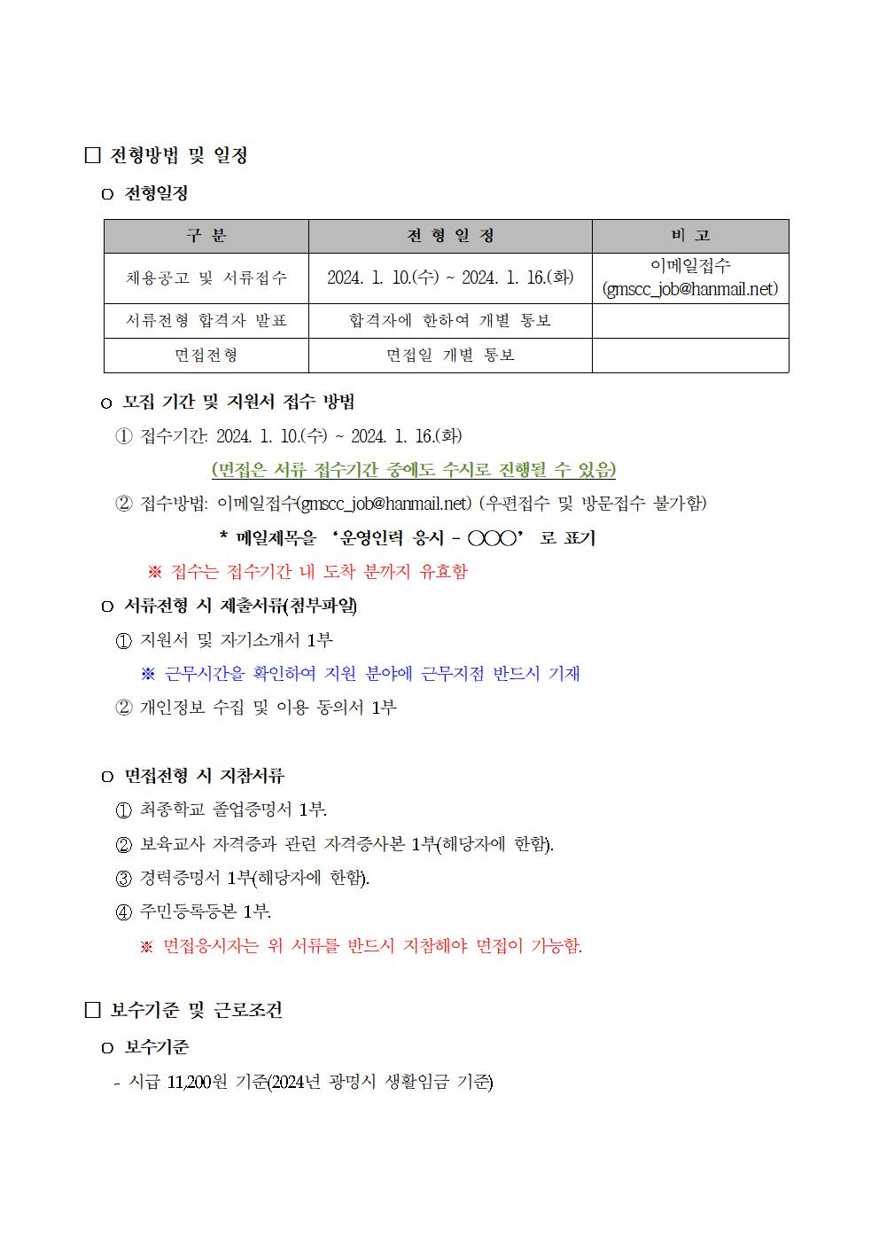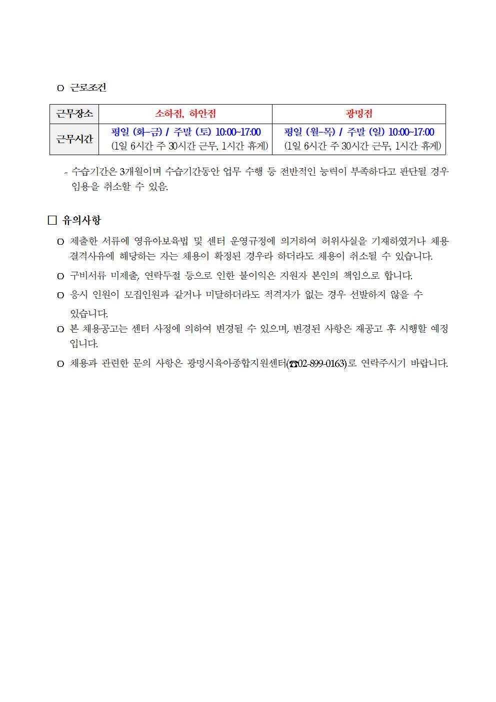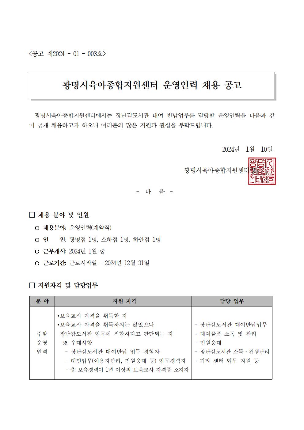 [채용] 광명시육아종합지원센터 운영인력 채용 공고