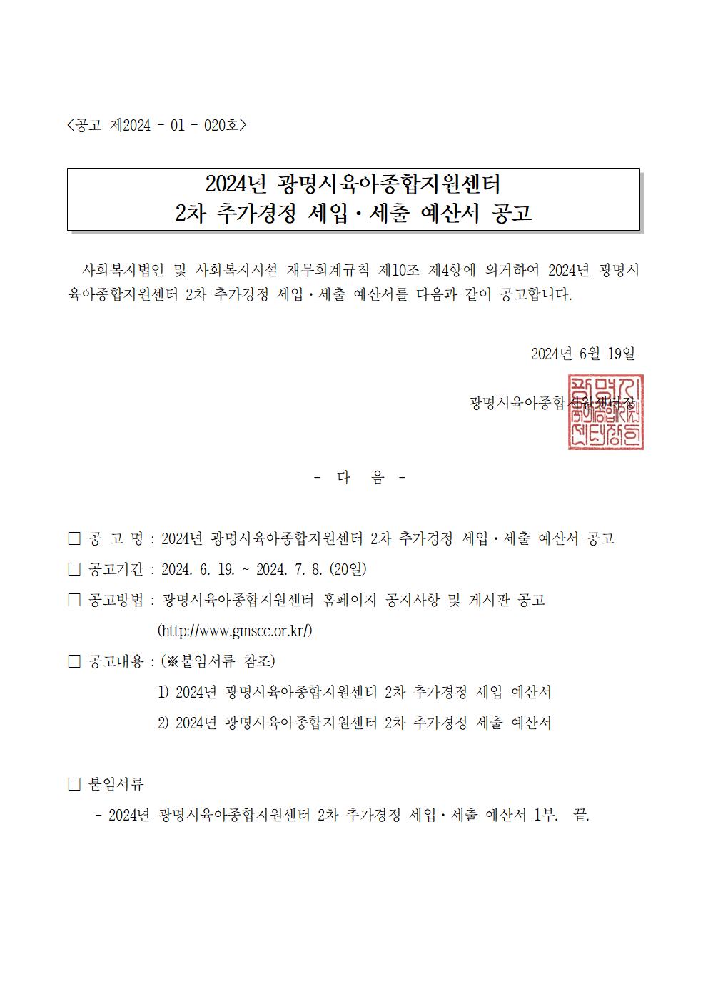제2024-01-020호 2024년 광명시육아종합지원센터 2차 추가경정 세입세출 예산서 공고.pdf