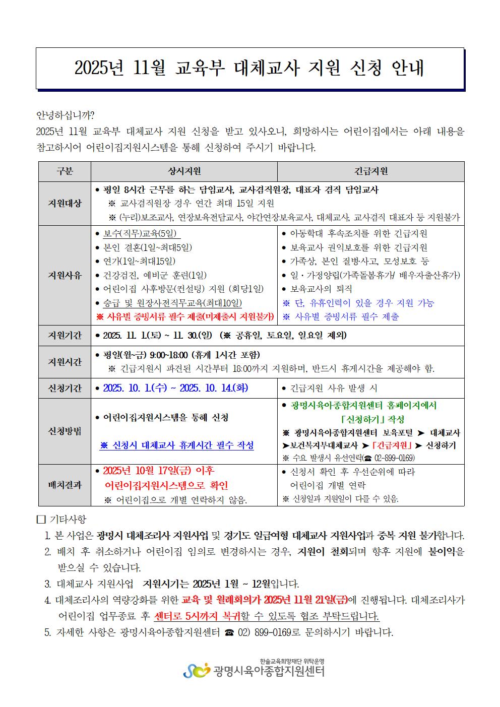 [휴가신청] 2025년 11월 교육부대체교사 지원신청 안내