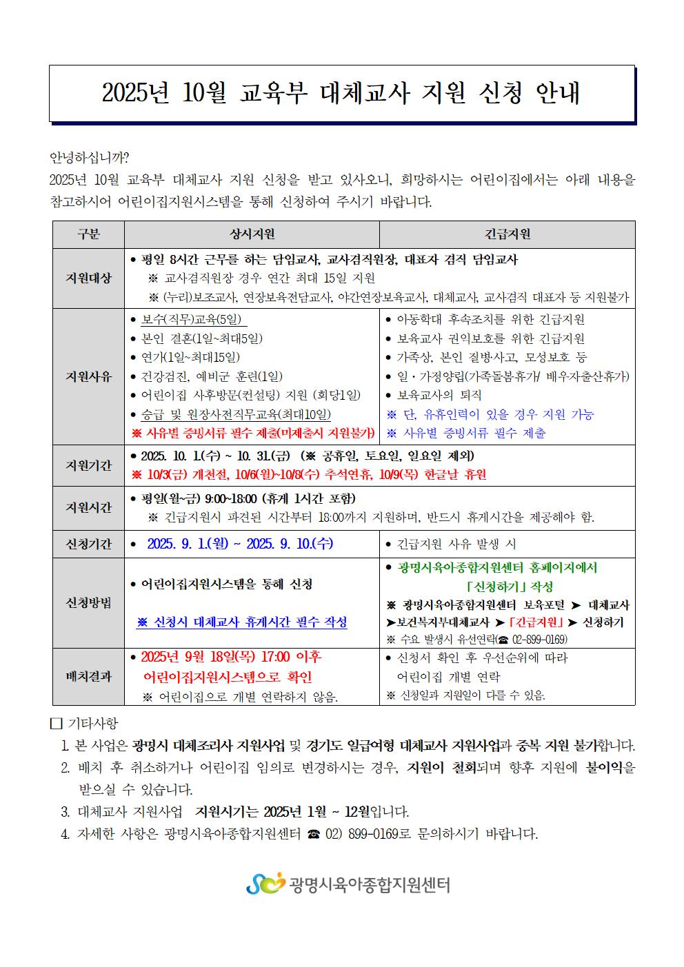 [휴가신청] 2025년 10월 교육부대체교사 지원신청 안내