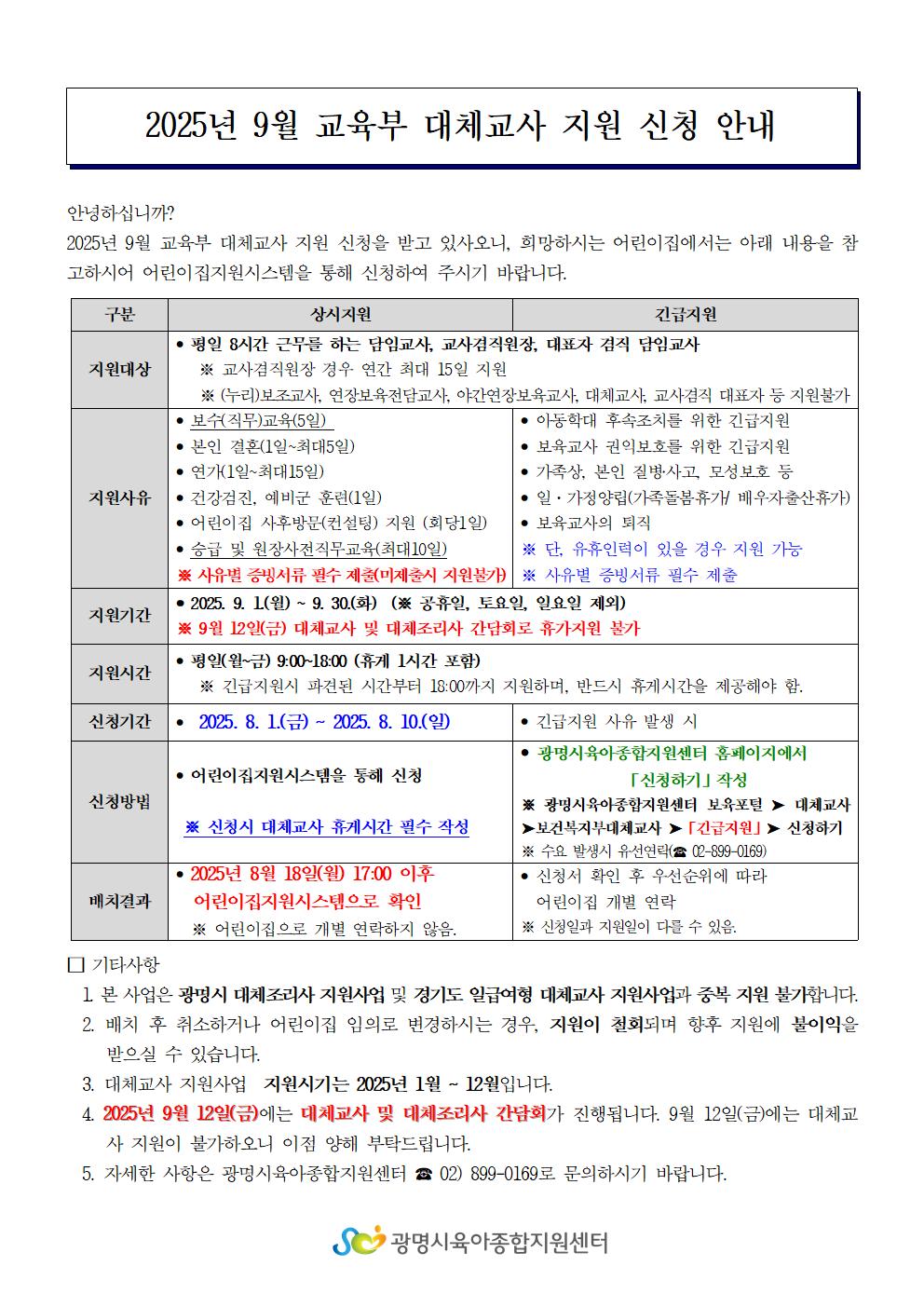 [휴가신청] 2025년 9월 교육부대체교사 지원신청 안내