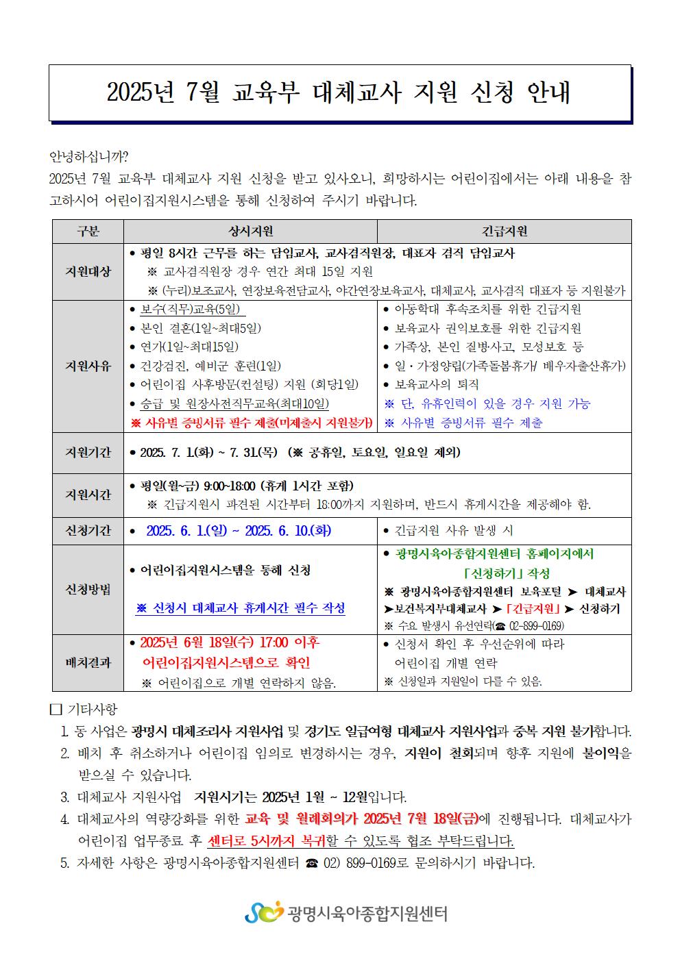[휴가신청] 2025년 7월 교육부대체교사 휴가신청 안내