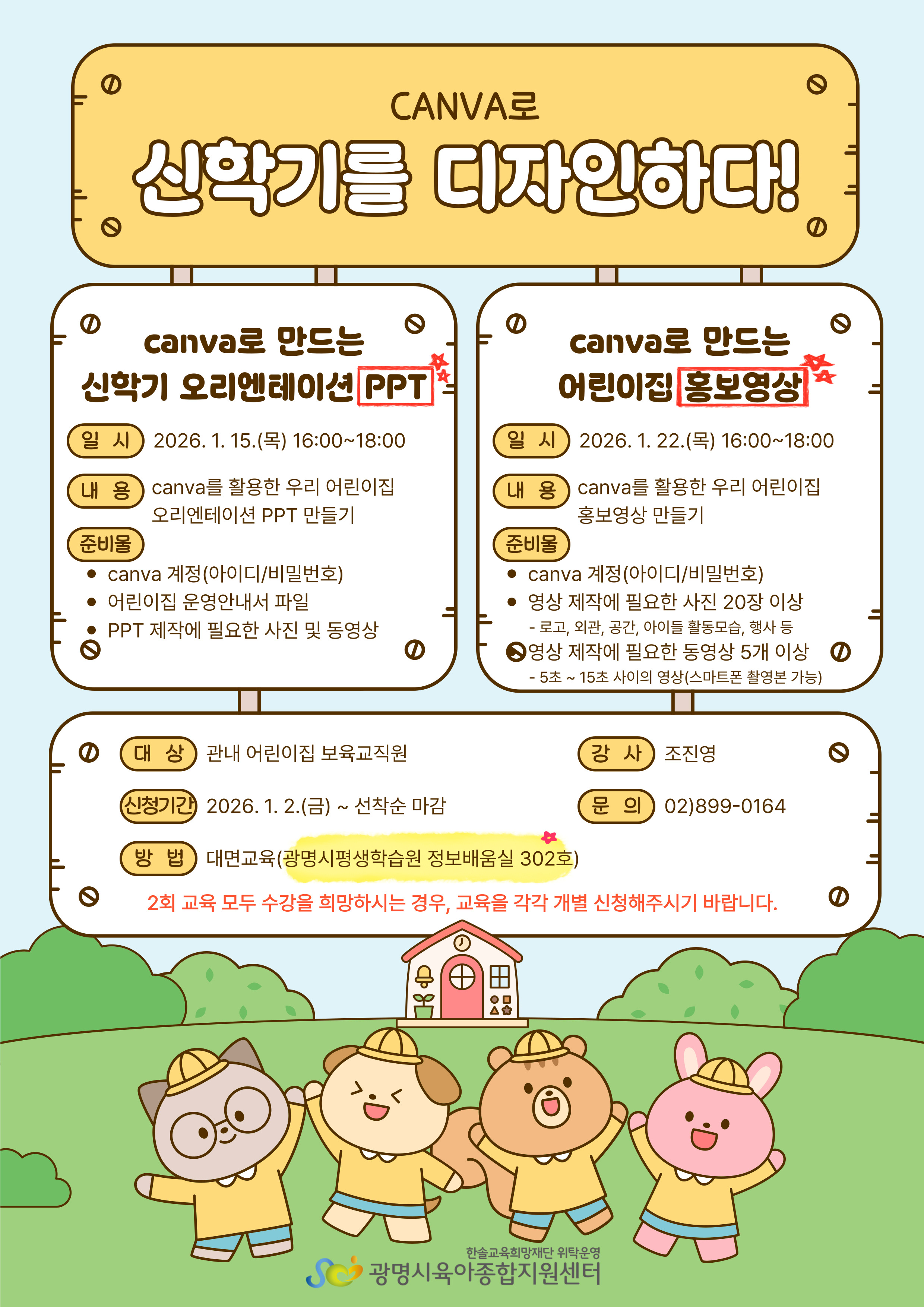 canva로 신학기를 디자인하다! (어린이집 홍보영상 제작) 2026.01.22(목) 16:00 ~ 18:00