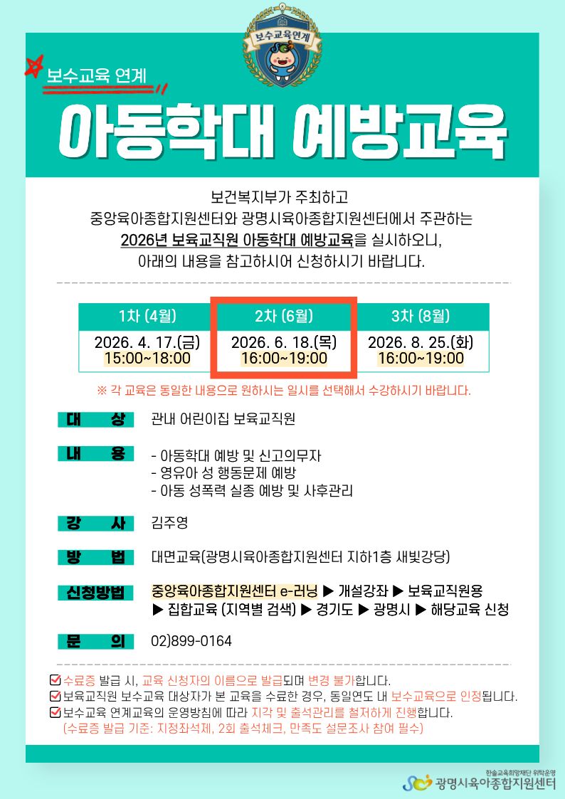 (보수교육연계)아동학대예방교육 2026.06.18(목) 16:00 ~ 19:00