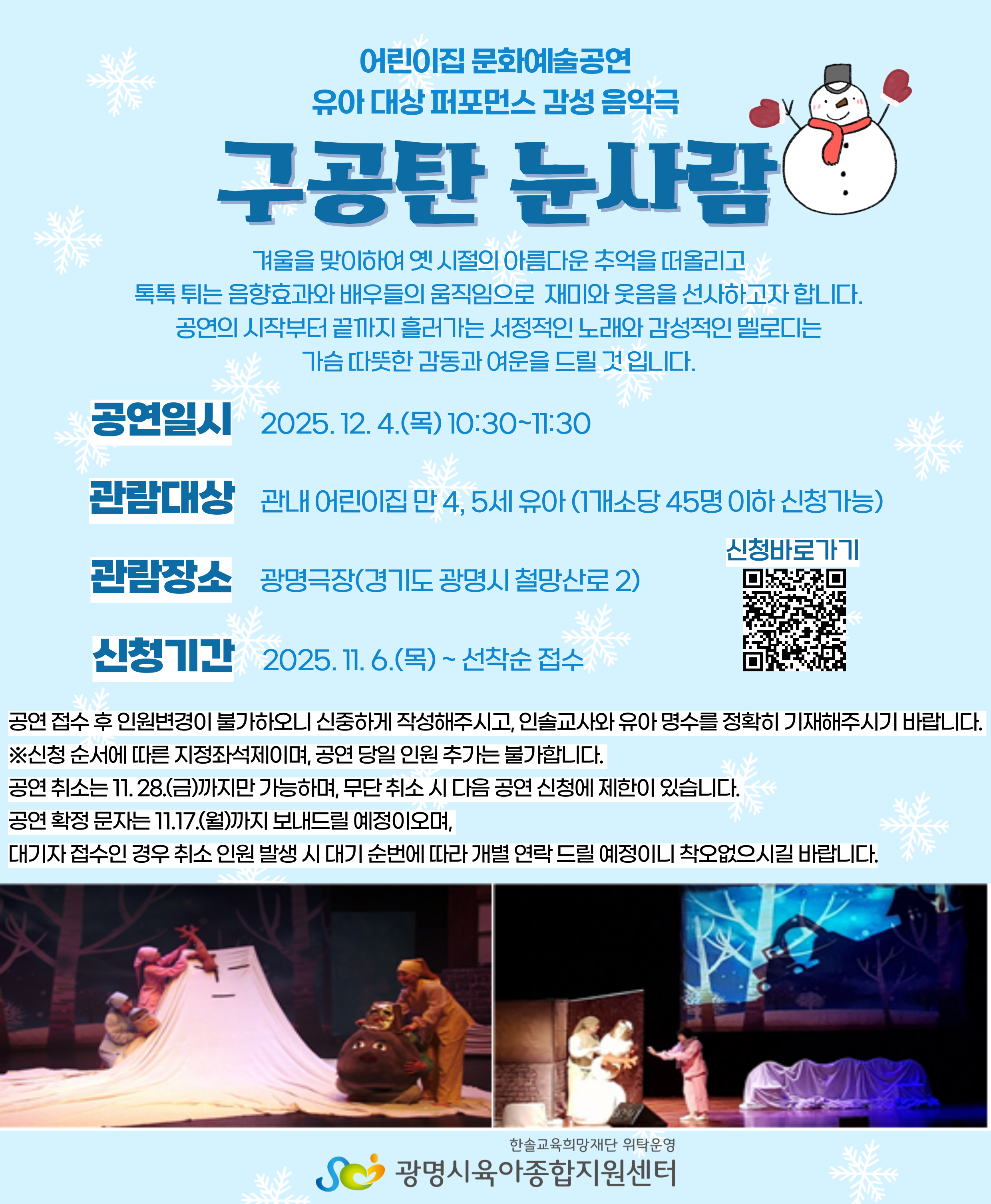12/4(목) 10:30~11:30 유아 감성음악극 「구공탄 눈사람」