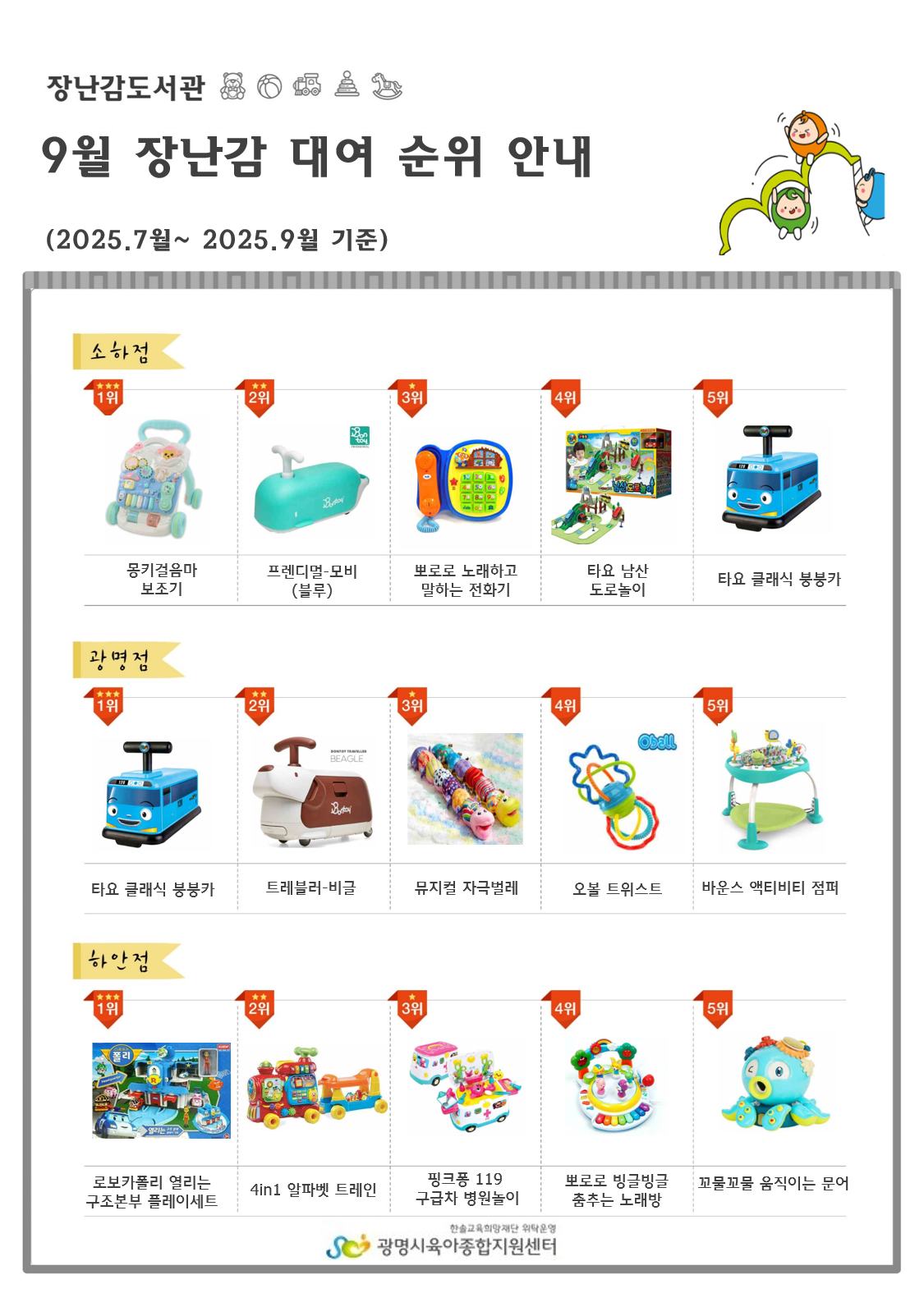 [공지] [대여순위]2025년 9월 장난감 대여순위 안내