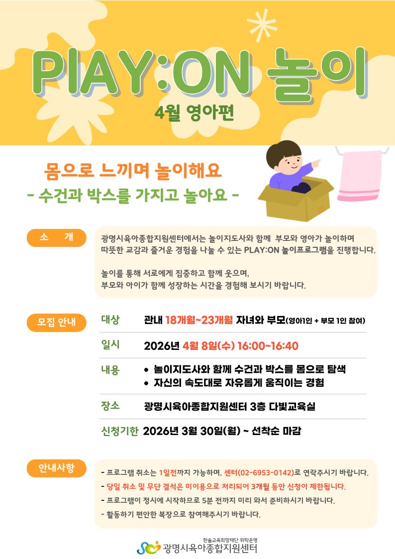 PLAY:ON 놀이(18개월~23개월) 2026.04.08(수) 16:00 ~ 16:40