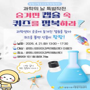 - 광명시육아종합지원센터 영유아과학체험센터 주말보조인력 채용 공고