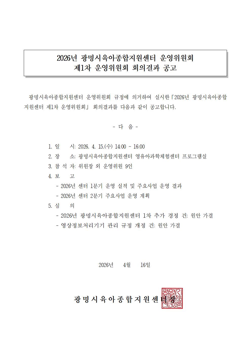 [공고] 2026년 1차 운영위원회 결과 공고