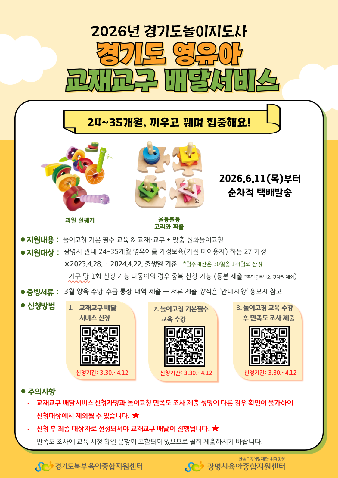 [안내] [24~35개월 대상] <경기도 영유아 교재교구 배달 서비스> 신청 안내
