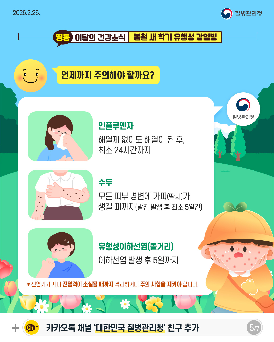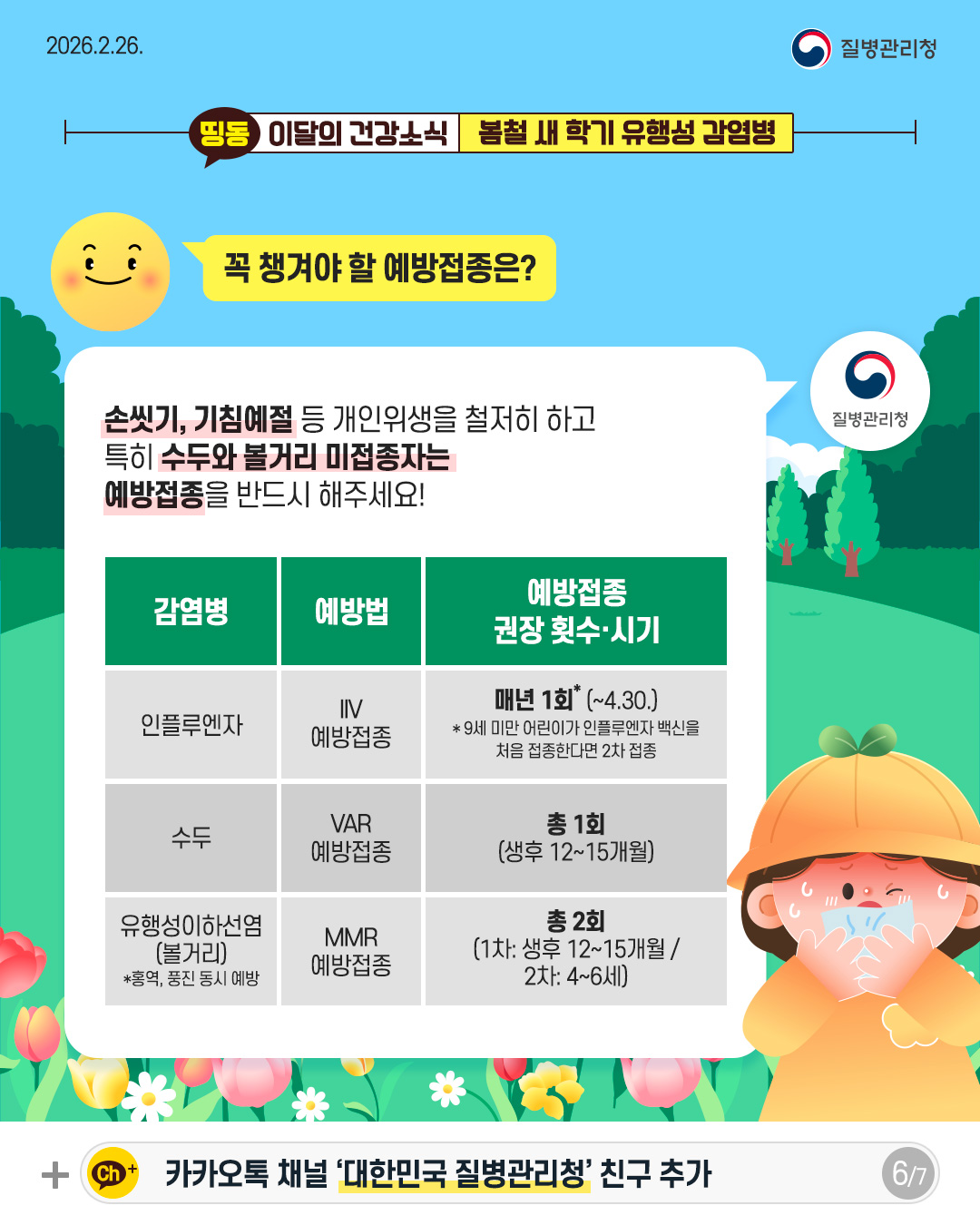 [질병관리청] 따뜻해진 날씨에도 방심은 금물! 봄철 새 학기 유행성 감염병